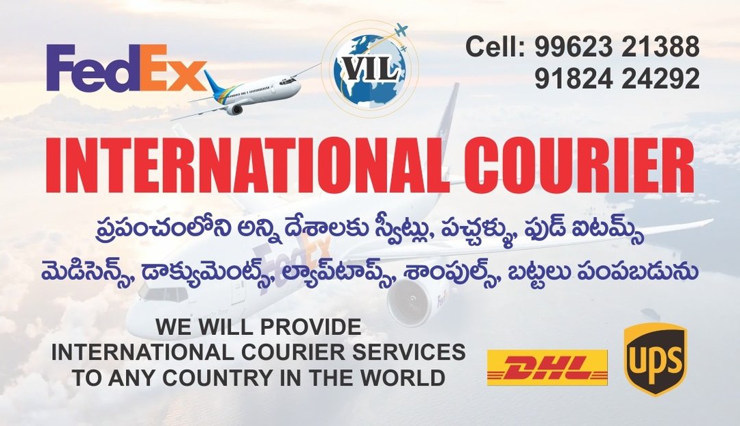 7388877477 "Fast and Reliable International Courier Services | Safe and Timely Deliveries" We offer efficient and secure International courier services to meet all your delivery needs. From local to nationwide shipping, we ensure your packages are delivered on time and in perfect condition. Whether it’s documents, Laptops,,Medicine, Samples, Food items, Gift articles, parcels, or bulk shipments, our trusted network guarantees speed, reliability, and customer satisfaction. Track your shipment easily and enjoy affordable rates with our professional courier solutions. Contact us today for hassle-free delivery services! International Courier Services Fedex Courier Services Courier to USA DHL Courier & Garudavega Courier Service